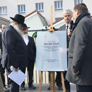 Après la prière du grand rabbin et la lecture de deux poèmes par des élèves, la plaque en hommage à #Mirelle_Knoll, cette rescapée de la Shoah assassinée à son domicile le 23 mars 2018 à l'âge de 85 ans, a été dévoilée ce lundi matin.
